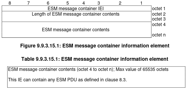 The ESM message container information element is defined in Section 9.9.3.15. It also matches what we see in Wireshark.