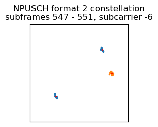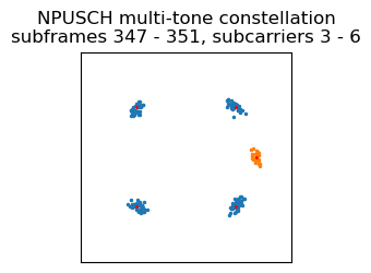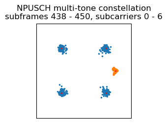 The next transmission is the first multi-tone NPUSCH format 1 transmission that we see in the recording. It occupies subcarriers 3, 4, 5. Decoding multi-tone NPUSCH format 1 has the following differences compared to single-tone NPUSCH format 1: