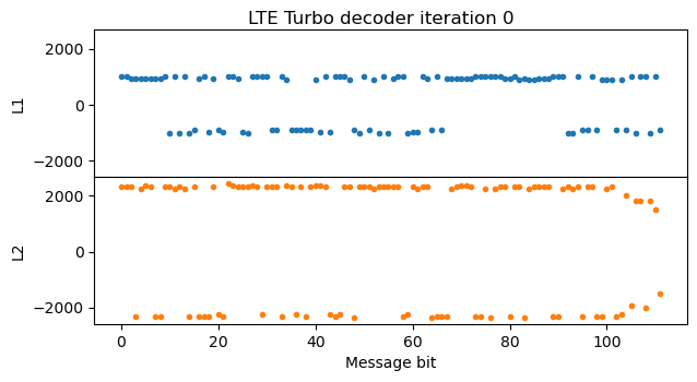 Since there are no bit errors, the Turbo decoder is able to obtain a correct decode in just one iteration.