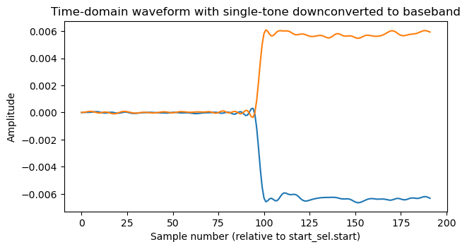 We can zoom in time to the beginning of this transmission to find the sample where the first symbol begins, which we need to perform demodulation.